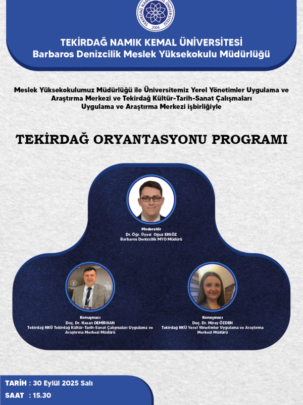 Barbaros Denizcilik Meslek Yüksekokulu 2025-2026 Akademik Yılı Öğrenci Oryantasyon Programı